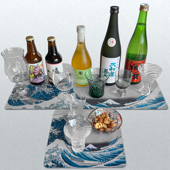 | 『SAKE(酒)=アルコール飲料の総称』なので、日本酒専用というわけではなく、ビールやウィスキー、ソフトドリンクなど様々な用途に使えます。 程よく吸水・弾力性があり、薄くて使いやすい優れもの! 複数の酒器や冷やしたボトルが置けるので、ゆったりと『SAKE』を楽しんでいただけます。 更にデスクではマウスパッド+コースターとしても大活躍! Size:22.0 x 22.0 x 0.2cm (柔らかめのマウスパッドに似た素材) → 詳しくはこちらから <SAKEマット>はBud Shopの登録商標です
